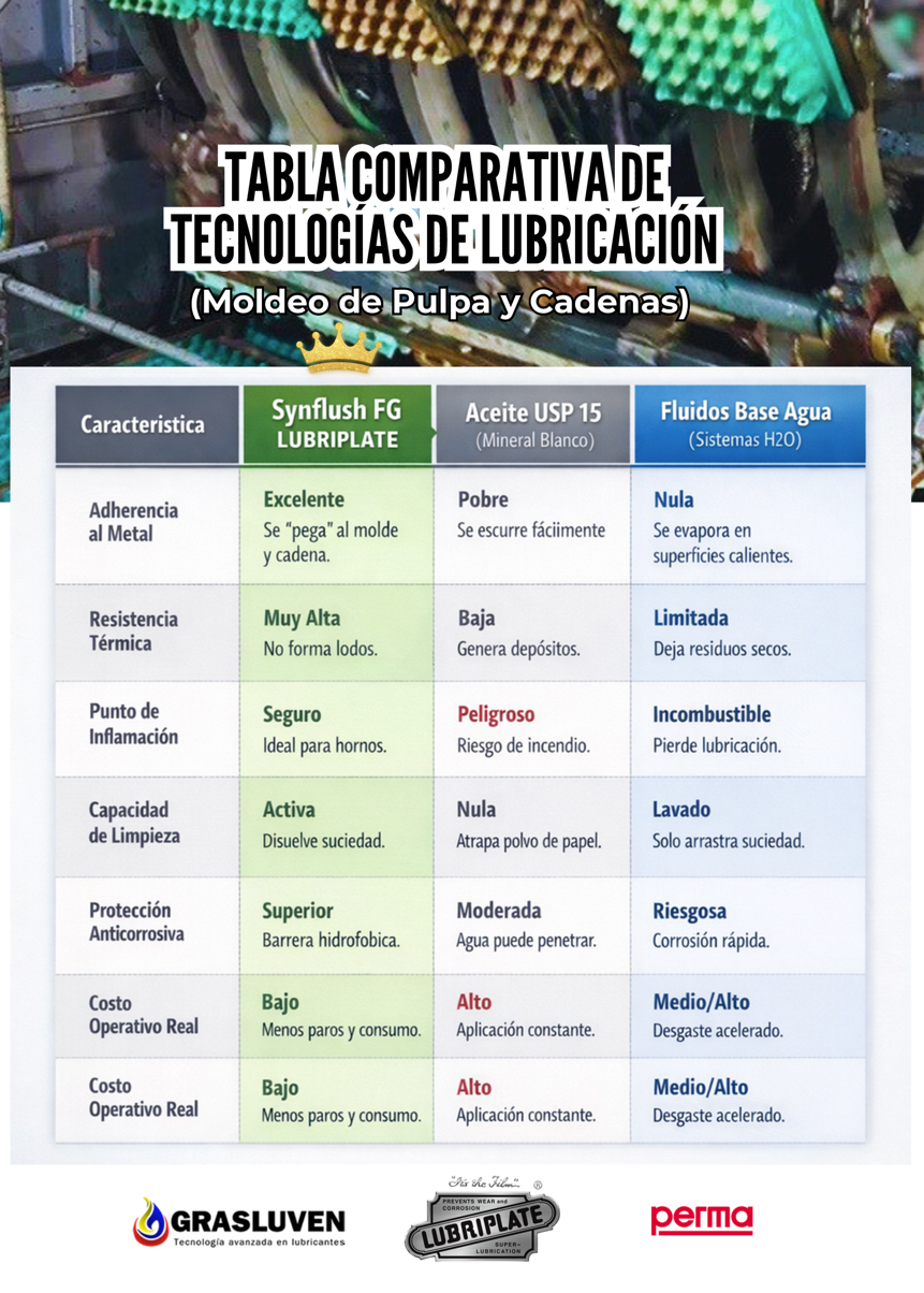 Synflush FG Lubriplate vs otras tecnologías de lubricación: comparativa técnica para moldeo de pulpa y cadenas